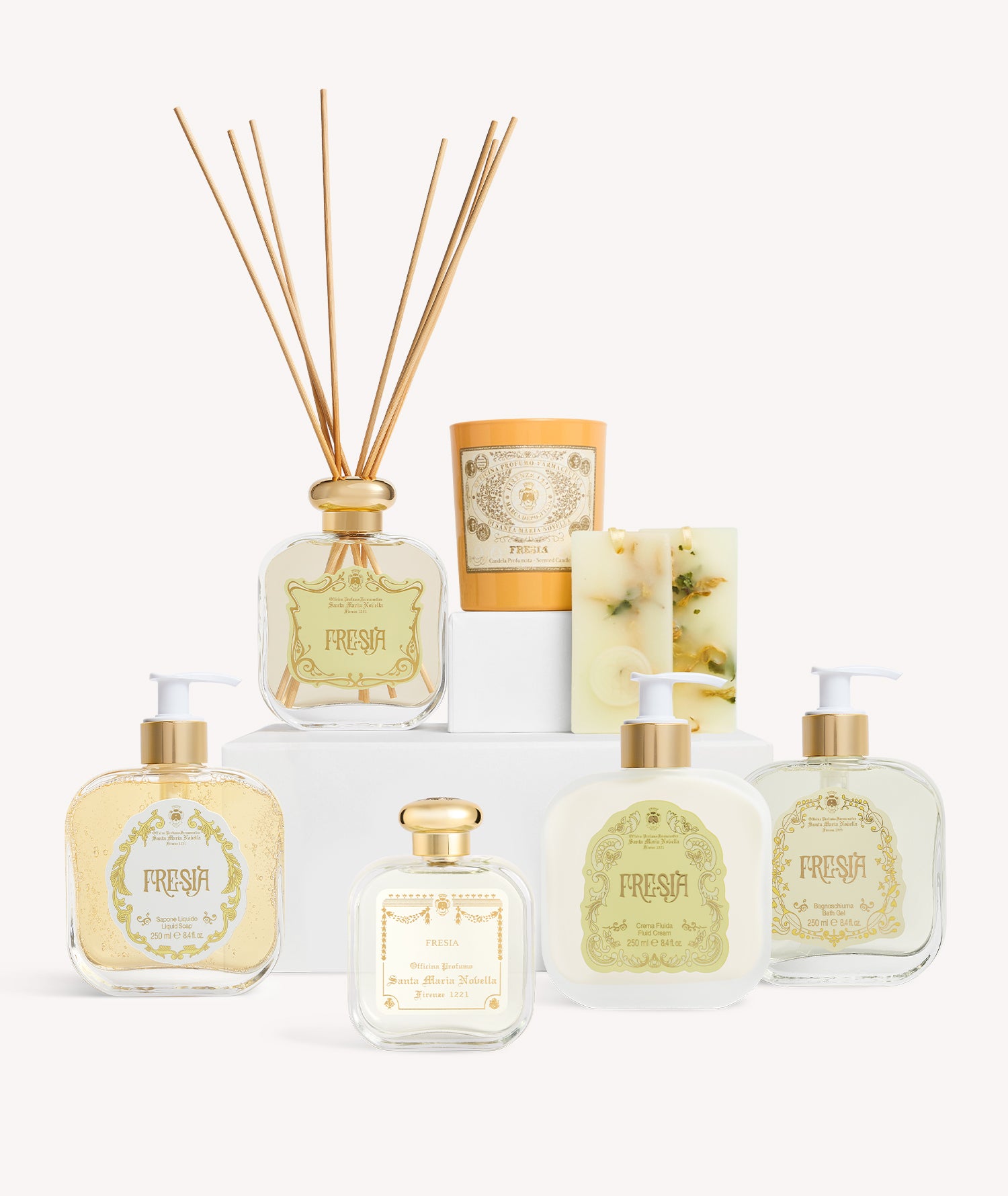 When the purity of flowers transforms into wax, the Fresia Scented Candle is born. A clear and luminous bouquet to perfume the rooms of your home, inspired by Santa Maria Novella’s Fresia Eau de Cologne. Read more