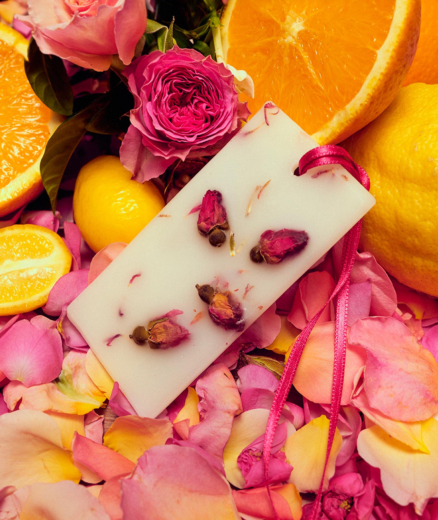 Embrace the enchanting essence of spring. Discover Rosa Novella Scented Wax Tablets, crafted and refined by hand with rosebuds and crimson flower petals, ideal to perfume drawers and closets.