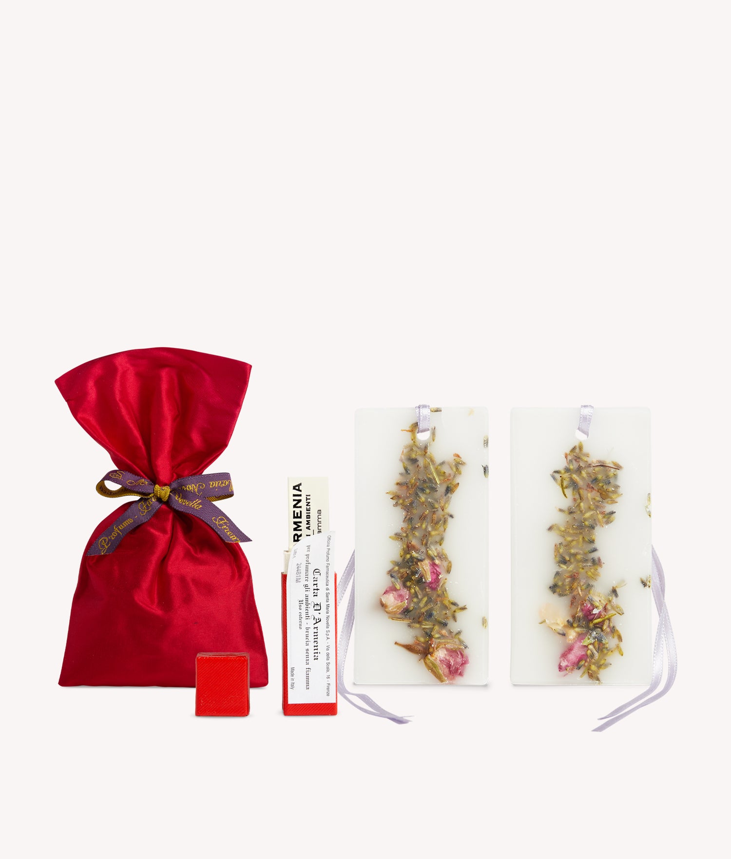 Eighteen pieces of paper, held in an elegant package reminiscent of fire, burn without flame, diffusing their essence into drawers, closets, or walk-in wardrobes. They scent linens, fabrics, and every corner of your home with their exquisite fragrance. Marketed since 1885, Carta d'Armenia is one of the last remaining "Medicinal Papers". These sanitising deodorants were widespread from the 17th to early 20th centuries, since the moment when Frenchman August Ponsot noticed that the people in Armenia used to scent and sanitise their homes by burning a natural resin with a balmy, vanilla-like fragrance: benzoin resin.